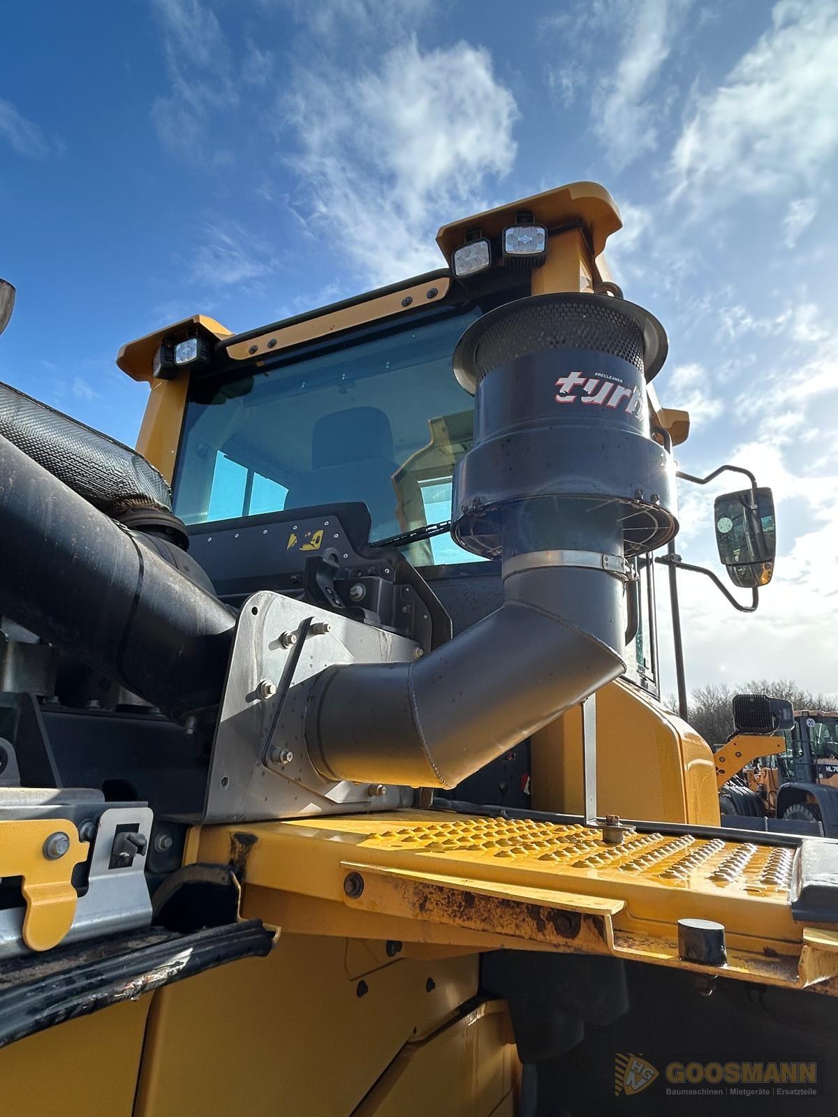 Normalschaufel, Klima incl. Klimaautomatik, Rückfahrkamera, BSS-Hubgerüstdämpfung, Anhängerkupplung, Zyklonvorreiniger Turbo, Umkehrlüfter, Zentralschmierung, Rückfahrblitzer,